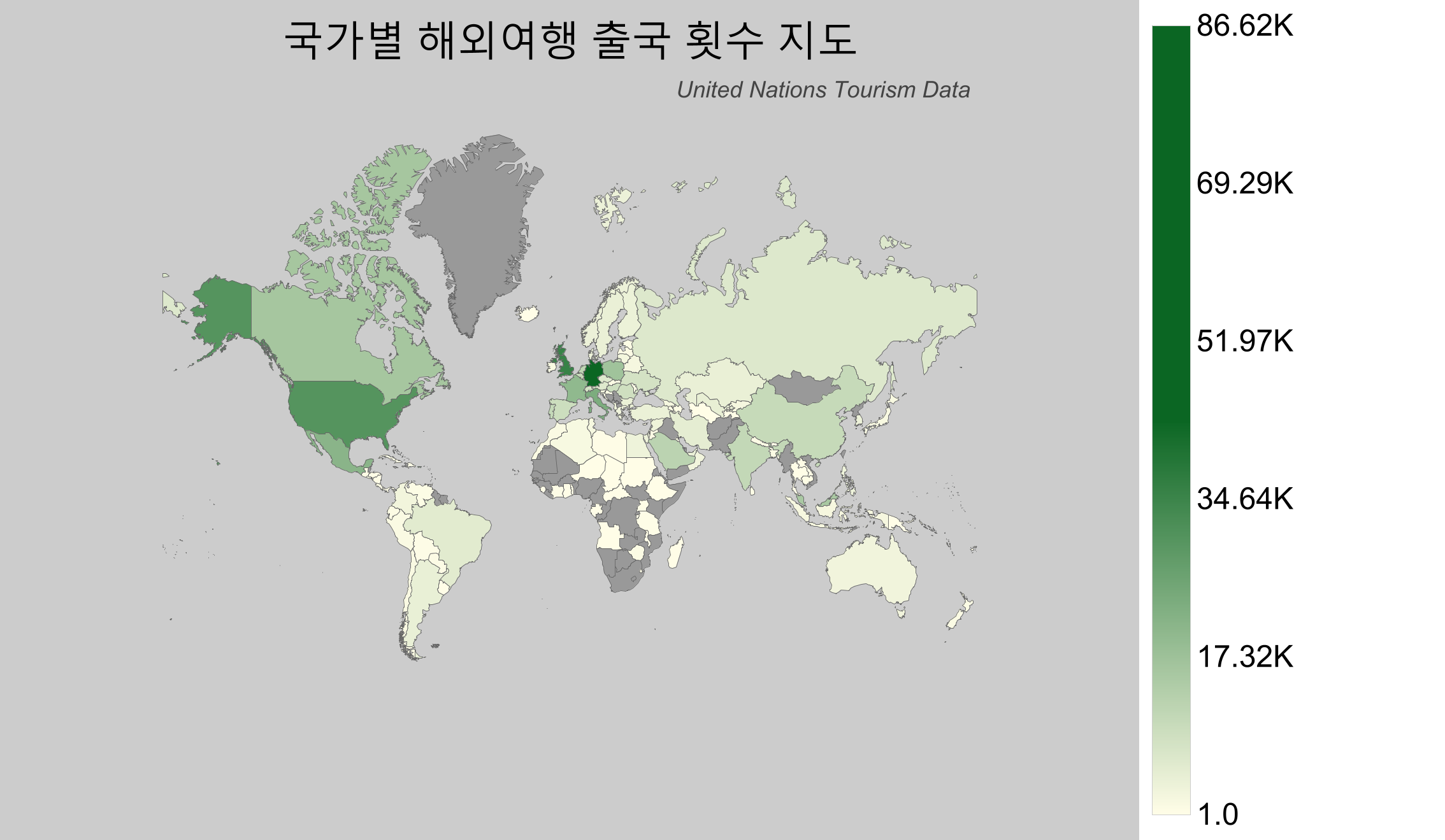 - 대한민국: 국제 여행 출국자는 약 655.4만 명으로, 글로벌 순위에서는 36위에 위치했습니다. 이는 경제적 발전과 더불어 해외 여행에 대한 국민의 높아진 열정을 보여 줍니다.